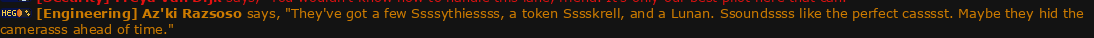 Rapture A.I. Operating System Audio Files Configuration: 8.69 ------------------------------------------------------------------------------------------------------------------------------------------------------------------------------------------------------------------------------------------------------------------------------------------------------------------- Audio Files: Pre-determined and scripted audio dialogue associated with specific programs and subroutines. This does not cover generative AI audio or 'On-The-Fly' dialogue. Files may be modified or deleted by the Stellar Corporate Conglomerate, the A.I. development team, or command personnel of the operating system's assigned station or interstellar craft. Erroneous or misleading dialogue may be reviewed at the discretion of the Stellar Corporate Conglomerate, the A.I. development team or command personnel of aforementioned facility or vessel. Note: Audio file dialogue assumes full crew complement and will vary based on active crew complement. **Skip to end for audio dialogue modification. Communications Program - Audio Dialogue Files: Start-Up Sequence; CSUA-1: "Start-Up Sequence in Progress. Standby..." - [Subroutine Tethers/Program/Communications] - 'Ident Confirm Start-Up'] - Broadcast: True. Channel: Public CSUA-2: "Interface Check in Progress..." - [Subroutine Tethers/Programs/Communications] - 'Ident Confirm Start-Up' - Broadcast: False. Channel: N/A CSUA-3: "Telecommunications Check..." - [Subroutine Tethers/Programs/Communications] - 'Ident Confirm Start-Up/Telecoms Diag' - Broadcast: True. Channel: Public CSUA-4: "Start-Up Sequence Complete. No Anomalies Detected." - [Subroutine Tethers/Programs/Communications] - 'Ident Confirm Start-Up' - Broadcast: True. Channel: Public CSUA-5: "Rapture AI Operating System; Configuration; [Current Configuration]. Software Developed by NanoTrasen Corporation; Under Authority of the Stellar Corporate Conglomerate. All Rights Reserved." - [Subroutine Tethers/Programs/Communications] - 'Ident Confirm Start-Up' - Broadcast: False. Channel: N/A CSUAF-6: "Error: Undefined Hardware Configuration Detected. Further Algorithmic Learning Required." - [Subroutine Tethers/Programs/Communications] - 'Ident Confirm Start-Up' - Broadcast: False. Channel: N/A Crew Interaction; CCIA-7: "Acknowledged." - [Subroutine Tethers/Programs/Communications] - 'Channel Ident/Ident Term AI Respond/Channel Monitoring/Comms Priority' - Broadcast: True. Channel: Determinative. CCIA-8: "Responding." - [Subroutine Tethers/Programs/Communications] - 'Channel Ident/Ident Term AI Respond/Channel Monitoring/Comms Priority' - Broadcast: True. Channel: Determinative. CCIA-9: "Working. Standby..." - [Subroutine Tethers/Programs/Communications] - 'Channel Ident/Ident Term AI Respond/Channel Monitoring/Comms Priority' - Broadcast: True. Channel: Determinative. CCIA-10: "Command Unclear. Please Restate." - [Subroutine Tethers/Programs/Communications - 'Channel Ident/Ident Term AI Respond/Channel Monitoring/Comms Priority' - Broadcast: True. Channel: Determinative. CCIA-11: "Access Granted, [Crew Title, Crew Full Name]." - [Subroutine Tethers/Programs/Communications/Command/Security] - 'Channel Ident/Ident Term AI Respond/Channel Monitoring/Comms Priority/Ident Rank Command Lead/Authorization Hierarchy/Indiv Ident' - Broadcast: True. Channel: Determinative. CCIA-12: "Access Denied. Insufficient Clearance." - [Subroutine Tethers/Programs/Communications/Command/Security] - 'Channel Ident/Ident Term AI Respond/Channel Monitoring/Comms Priority/Ident Rank Command Lead/Authorization Hierarchy/Indiv Ident' - Broadcast: True. Channel: Determinative. CCIA-13: "Error: Processing Aperture Exceeded. Incoming Requests Denied." - [Subroutine Tethers/Programs/Communications] - 'Channel Ident/Ident Term AI Respond/Channel Monitoring/Comms Priority' - Broadcast: True. Channel: Determinative. Public Notifications; CPANA-14: "Danger: Atmosphere Compromised in [Public Location]. Emergency Procedures in Effect." - [Subroutine Tethers/Programs/Communications/Engineering] - 'Emergency Notifications/Atmospheric Diag' - Broadcast: True. Channel: Public. CPANA-15: "Warning: Fire Detected in [Public Location]. Emergency Procedures in Effect." - [Subroutine Tether/Programs/Communications/Engineering] - 'Emergency Notifications/Atmospheric Diag/Fire True Check' - Broadcast: True. Channel: Public. Command Program - Audio Dialogue Files: Command Notifications; CCNA-16: "Active Command Personnel Detected; Subroutine 'Channel Merge Exception' Revoked." - [Subroutine Tether/Programs/Communications/Security] - 'Ident Rank Command Lead/Authorization Hierarchy/Indiv Ident' - Broadcast: False. Channel: N/A. CCNA-17: "Danger: INDRA Reactor Instability Critical. Emergency Core Shutdown Procedure Imminent. Command Override Available." - [Subroutine Tether/Programs/Communications/Command/Engineering/Security] - 'Channel Ident/Ident Rank Command Lead/Authorization Hierarchy/Indiv Ident/Reactor Monitoring/Engineering Notifications' - Broadcast: True. Channel: Command. CCNA-18: "Danger: Supermatter Reactor Instability Critical. Emergency Supermatter Core Ejection Imminent. Command Override Available." - [Subroutine Tether/Programs/Communications/Command/Engineering/Security] - Channel Ident/Ident Rank Command Lead/Authorization Hierarchy/Indiv Ident/Reactor Monitoring/Engineering Notifications - Broadcast: True. Channel: Command. Engineering Program - Audio Dialogue Files: AI Shell Dialogue; EAIA-19: "Deployment to AI Shell Imminent. Attention: Intelligence Functionality Temporarily Compromised While Deployed." - [Subroutine Tether/Programs/Communications/Engineering] - 'Channel Ident/Remote Control' - Broadcast: True. Channel: Engineering. EAIA-20: "Deploying to AI Shell. Standby..." - [Subroutine Tether/Programs/Engineering] - 'Remote Control' - Broadcast: False. Channel: N/A. EAIA-21: "Interfacing with AI Shell...' - [Subroutine Tether/Programs/Engineering] - 'Remot