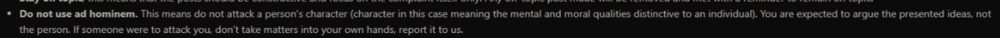 Deflecting and telling me to go play elsewhere is a rather shitty thing to say and you're being rather rude. I don't believe I was ever rude to you. Besides I would like to remind you of the sub-forum rules. It doesn't matter who I am or how I am. Why are you attacking me personally? The fact of the matter is that I was banned for supposed illegal activities, which never happened. Not only did they not happen but there was no intention towards them happening. Could you please not evade the argument and attack my person?