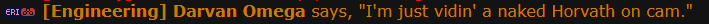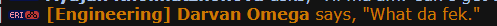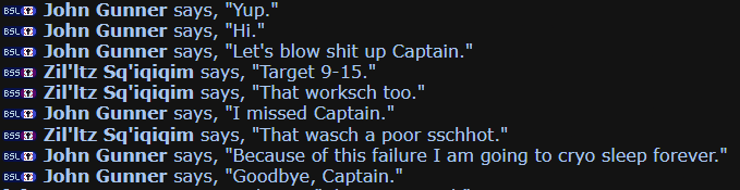 Jackson Fernand, Operations Manager: A hungover looking middle-aged man appears on holoscreen, a few empty beer bottles line the shelf behind him, clearly hasn't kept his hair and beard in a couple weeks. He speaks barely understandable to normal Basic, and mostly understandable to Freespeak outer spacers. AUDIO STARTS: Right so, da fuq been goin' on?? Gettin' dem' alarms' 'n shite, why we so fuggin' low on supply? Normally ma' ass ain't needed to handle any problem like dis cuz it ain't need it, ops runs itsself everyday, yeh? I can see some help needed, fekks sake man. Why's no one tell me bout dis' could'a handle any supp shite meself... fekkk.. *sigh* Should be easy 'nuff we gotta head fer damn C-E-S 144. Best option around fer sure, 'n y'all better grab every damn lick of supply ya can get, assumin' I ain't there my self! If ain't shite there.. well, den I'll see y'all in line fer da last of da rations. AUDIO CUTS. The man takes a shot of what seems to be a brown liquor, then cuts the video feed off, seemingly pissed off.