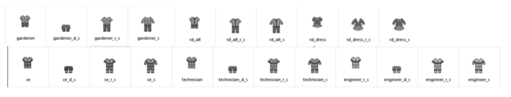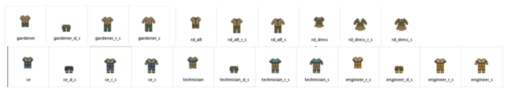 16. I really appreciate how much work you've put into these sprites. Each one looks different, but also seems part of a set (ie a company uniform!). There are some really nice colors here and there, and I particularly love the whole designs for security, medical and most of science! Really quite fantastic! I am looking forward to wearing those generic jumpsuits, too! You make some incredible designs that feel space-age futuristic, but also fit really well into a corporate business feel. Very nicely done! I do, however, have some personal concerns with a handful of uniforms and the tl;dr comes down to the colors of these few are desaturated and the same tone. I really enjoy the designs of your uniforms, I do. My issues are with the colors of the RD's alt uniform, the gardener's uniform, the CE's uniform (although I am very hesitant to include this one because the blue and yellow ARE quite nice), the atmospheric technician's uniform, and the engineer's uniform, as well as all of cargo's and mining's uniforms (not included above). The colors of these uniforms in particular seem a little desaturated or too military-esque, if that is such a thing. When I removed the color entirely, I also noticed that for some of these it was just a little difficult to tell the color is removed, and the tone was also very similar. However, I stand by the opinion that the uniforms have a brilliant design, it's just the colors. Compare the old gardener uniform to the one added here. The old gardener uniform is bright greens and blues (which I enjoyed, but are admittedly TOO bright), and then the new uniform has a new work suit feel to it and the green on the legs is nice, but that tan brown takes away from the nice green and makes the work suit feel military. Perhaps instead of a tan brown, changing the gardener's top half to a lighter green or blue would bring out that lovely dark green of the bottom half. Little alterations like this, altering the brown to lighter more saturated colors. The CE's uniform is a nice blue and yellow, so I am hesitant to include this. Adjusting the yellow to be slightly brighter though might make it pop a little more, or perhaps it is a trick of the eye next to the other engineering uniforms that is bringing down the saturation. The engineer uniform is orange, but I think the saturation might be a smidge too low as it appeared brown a number of times I looked at it. The atmospheric technician has that lovely stripe of blue through it, but the desaturated brown is the same tone as it and makes it so the blue does not pop at all. Brightening or raising the saturation of either the blue or the brown could make it pop. Changing the RD alt uniforms to a warm reddish or purplish brown would take away the dull (as in desaturated) military-esque feel. Cargo, mining and the QM's uniforms could use brighter, more saturated colors also. For example, the colors you used on the purple and yellow generic jumpsuits would look incredible in the designs you made for cargo and mining. These are just my opinions though and I understand that brightening the colors of these is not as easy as adjusting a slider, they have to be altered pixel by pixel. So I do feel terrible for suggesting color alterations. If you did take my suggestion and decided to alter the colors of some of these, I would gladly assist! And if you choose not to take my suggestions, I also understand! These are just my opinions and I am still very grateful for the wonderful spriting you have done. Thank you for your time.