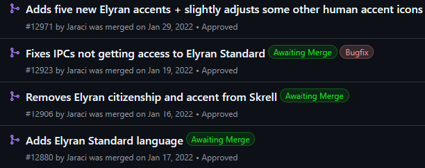 This is not even accounting for the fact that the Technical Assistant alt-title has at least a couple of regular players now. I think engineering as a department hit 13 or 14 players in the some of the event rounds. I don't mean for this to come off as sniping at or complaining about those players -- I think that's pretty clearly what that specific alt title is meant to enable, people to dip into engineering as the assistant role, and they're not doing anything wrong by using it that way -- but just to point out to anyone else in the thread that there are a ridiculous number of engineers available for a tiny pool of potential gameplay at higher server pops. This is also true, to the point where almost the entire department's supplies tend to end up in 'grab bags' left lying around after being hand labelled because the culture has reached that point. I wound up burning out on engineering very quickly after my return due to realising just how much I kind of hate feeling like I'm actively competing with other people for even the tiniest scrap of gameplay.