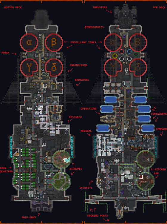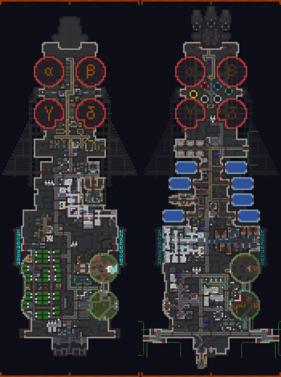 Indeed, on the pics there are two zlevels, bottom deck zlevel 1 being on the left, top deck zlevel 2 on the right. The top deck on the right is taken with "multiz rendering" enabled in strongdmm, where transparent turfs (like open space) show stuff on the zlevel below. So that for example, you can see the garden under the bar, in one of the biodomes. When I was listing this in that point in the main post, I meant that they would be more justified to be on Hedgemaze, not that there would be no filter or limit as to how "extreme" they can be, or that more of them would be present on the ship. They would still have to be reasonable and professional enough to be hired and work here, do their jobs and support the ship, and not clash too badly with other crew. People that are openly like "hey let's literally kill all corporates/dominians/solarians/synthetics/whatever" ideally wouldn't be hired, cause it would hurt the mission and bring crew morale and cohesion down. Almost all of these can work on Horizon already, and I don't think it causes a lot of problems coming from it. But the difference is that on Horizon, flagship of the SCC, they require a bit of suspension of disbelief as to why are they hired onto here. That suspension of disbelief is, of course, entirely reasonable and understandable, cause "realistically" SCC would only hire bieselites, solarians, eridanians, all humans and maybe some skrell, but that would be very boring and we don't want that. On an independent ship, it's not a problem, and it doesn't require any suspension of disbelief. That is a concern, yeah. But at worst, I don't think it would be too different from Horizon. Most of the conflict you list is between characters, and it would still be present on this independent ship. But here it would be more personal as in "if you scream you hate all solarians then maybe some day they'll just group up and throw you out of an airlock", and less "you'll be hit by an IR and suspended for a week". I think an equivalent of CCIAA/HRA should still exist though, cause there has to be someone to handle personnel management, hire and fire people, and process incident reports. It is an independent ship, but it's not like, lawless, outside of civilization. It can't work and complete contracts, if the crew is constantly fighting amongst each other, spending more time arguing than doing useful things. And ideally, yeah, I think there would still be conflict, just different. And a better sense of like camaraderie, of people working on the same ship, facing the same hardships, with little outside support. Something that I don't think is really present on Horizon, where people aren't even all hired by the same entity, but for different corporations, just assigned to the same ship for some time, and could be reassigned elsewhere at any time. That sounds neat and interesting, thank you for sharing.