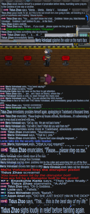 1. More or less all of the above to one extent or another, but for the most part it had to be lack of command presence in the Head of Personnel office. I feel like people tend to avoid it because it's immensely stressful and gets little to no 'yield' for interaction when compared to Head of Security, Chief Engineer or Research Director - all of those heads can have a direct hand in how situations are handled by their departments whereas Head of Personnel generally plays a more logistical/bureaucratic role that facilitates departmental adjustments. It's more of a power utility role than anything else, or at least that's how I like to look at it - you're not directly involved, but you have a set of tools that make everyone else's jobs much easier. Maintaining profitability in Cargo as well as keeping tabs on the other service departments gives something of a managerial aspect to the job that I feel like I've grown comfortable with as Quartermaster over the last month, and I think that will translate over to my abilities as Head of Personnel and vice versa as I double between the two. 2. I'm going into the idea of playing command knowing that I will have to take care of business first before I can engage in any meaningful RP. More or less that is why I've decided to shelve any idea of using any current characters as my Head of Personnel option as I'd like to dedicate a new one to more job-focused gameplay. That way I can effectively build their character around the job instead of having a predisposed idea and having to make compromises. I think it's important to know when to avoid letting the biases of RP get in the way of performing job duties, namely when other people's experiences depend on your ability to be responsible. 3. Cargo and service are generally look at as different departments, but having played both and understanding that the Head of Personnel is responsible for both I think it's important to bridge the gap between the two and understand how their smaller communities interact. Playing bartender for several months made me realize that a significant portion of cargo players tend to come to the bar whether for bounties, to deliver materials for drinks or simply just to hang out. The bar and kitchen are right across from the cargo lobby and are the most convenient spot to engage in RP for cargo that isn't cargo itself. Oftentimes people also interchange occupations between the groups too, so you get a lot of intermingling. I feel that with some fine-tuning of cargo's current playerbase as well as tapping into the more seasoned players in service the two can be a little more tight-knit and in turn it'll help with improving the overall experience of the department in general. I am trying to do that currently as QM with Nikita, as he already has an established rapport with a share of the regular chefs and bartenders, trying to get cargo folks to interact with them more often and supply more goods faster and when needed. Thank you so much! -