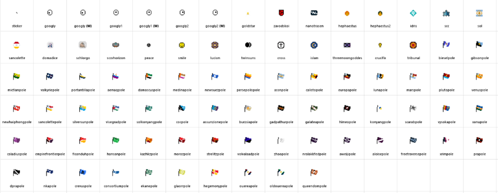 If I can figure it out, yes. I'd like to implement two different selections. One generic selection for everyone to take, and the flag stickers for consulars to take. I think I'm gonna divide them up by what group makes the most sense to have them. For example, fisanduh and the free tajaran alliance flag stickers will go in with the coalition stickers. Since we don't have any solarian consulars for lore reasons, I think I'll leave those as ones to be found. This is not set in stone, just the vague next step after I work through all of this.