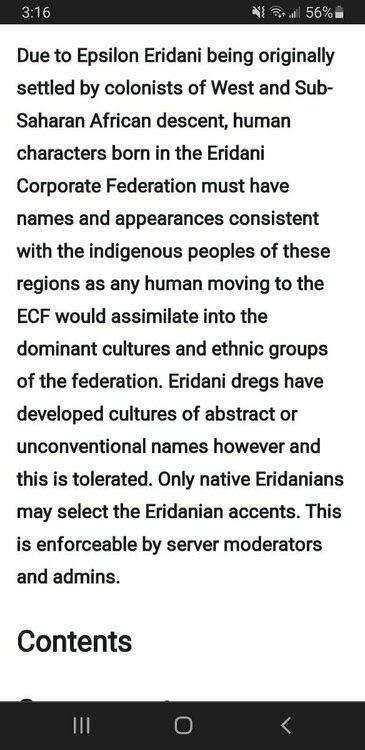 To decrease the need to bwoink people for not following the new archetypes being enforced on factions, and to decrease the potential of turning off a new player by bwoinking them over these and allowing them to fall into what are called noob traps, I am suggesting that the following be a mechanical restriction in character generation: If this is too difficult mechanically please consider adding visual aides on a sidebar, a topbar, or a bottombar to show 3 examples of what a character from those factions look like. This will minimize the workload on administration, clearly communicate expectations, and avoid potential PR disasters. Imagine the drama if an poorly worded bwoink says someones character is too white! Lol