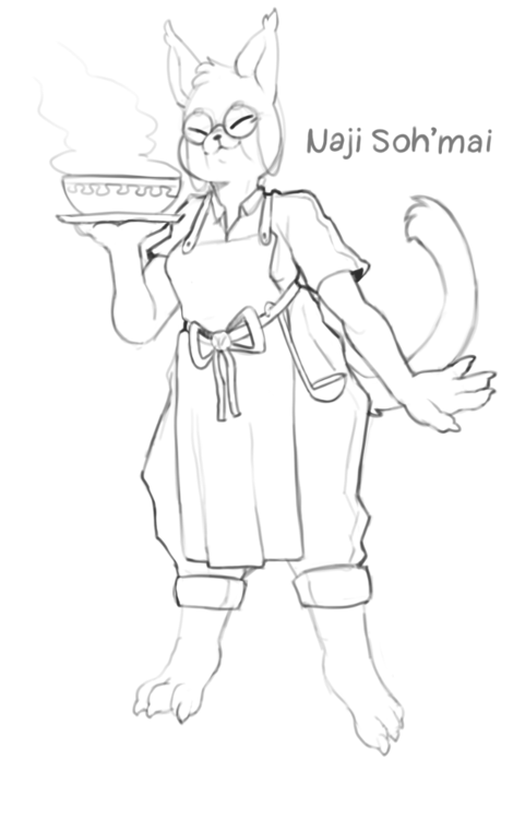 BYOND Key: CoffeeToffee Character Names: Species you are applying to play: Tajara What color do you plan on making your first alien character: Coco-Zhan Have you read our lore section's page on this species?: Ye Please provide well articulated answers to the following questions in a paragraph format. One paragraph minimum per question. Why do you wish to play this specific race: They seem like they have a rich history as well as a lot of potential for different stories seeing as they have a very active political scene with vastly different factions to chose from. I also love the clothing and military aesthetics a lot! With how much lore there is, it really opens up a lot of gimmicks and quirks you can play on for characters. Identify what makes role-playing this species different than role-playing a Human: Their physiological differences being the most obvious, they need special shoes and gloves to work properly, as well as accommodations so that they are not uncomfortably hot. They have undergone a lot of change to their culture and demographics in the recent years and enjoy a nice degree of variation in backstories, factions, and subspecies. Their method of speaking is also quite unique. Character Name: Naji Soh'mai Please provide a short backstory for this character: Naji is a 58 year old Zhan born to a Peoples Emancipation Movement revolutionary, spending most of her adolescent life moving from town to town with her mother to avoid the authorities as her father fought off the monarchies. Her father never returned as is presumed dead at their hands. Her fair amount time was spent abroad helping her mother in the soup kitchens and bread lines of Nazira. By the time she was an adult the war had been won, yet she chose to continue her service in the soup kitchens, coordinating with S'rand'marr chapels and shelters to feed the needy and displaced tajara as the political scene uprooted many of their lives. During the relative peace in 2440, Naji married a young PRA soldier, Sebo, having her first litter. Her life was fairly quiet until 2451, when her husband begged her to leave Adhomai as tensions rose and he feared for her safety. She refused, staying with her husband, refusing to desert him. As time went on, she found herself agreeing more and more with the DPRA, infatuated with the freedom and liberty they promised. After the armistice had been signed, and with much thought and discussion with sebo, they managed to transfer into DPRA territory and aligning themselves fully with their values to secure a just and fair society for their children and the people of adhomai to belong in. Though the advancement of nuclear weapons leaves a sour taste in her mouth, though she feels if the threat they pose is great enough, they will never need to be used, hoping that the threat of mutually assured destruction is enough to keep people from fighting for real. In the current year, with both Naji and Sebo growing old, they decide to live abroad, seeing what space has to offer before they die. Their children remain on Adhomai, keeping them updated on current events. They currently reside in D6 on mendell city, sharing their experiences and culture with the other species that happen through little adhomai. She tries to treat PRA citizens with the respect she expects in return, though NKA tend to make her uneasy, reminding her of her upbringing under monarchal factions. She finds her interactions with other species pleasant, despite the distinct atmosphere of racism left behind by the vestigial PRA doctrines. What do you like about this character? I think having a family gives her a good motivation for her job, as well as decent exploitable information for antagonists to play on. If prompted by other tajara im sure she could have some interesting interactions with them. Shes also super cute, just look at her! >:3 (Describe what you like about this character How would you rate your role-playing ability?: I think im decent, though I understand that im not perfect. always looking to improve! Notes: I drew what I imagine them to look like in my head :3