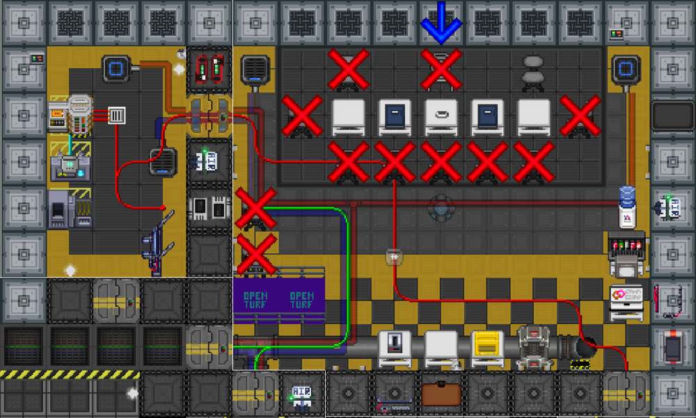 Thank you for the feedback, helps me fix any bugs! There is actually a vent and scrubber in the freezer; the vent is beside the intake for the gibber and the scrubber is under the table, I will move the scrubber so it is easier to locate. Things I am fixing thus far: Freezer scrubber/vent Freezer air alarm Bar darkness Dining hall darkness Plating under private lounge window Hydro trash lines (potential) issues, not sure, just double checking Railing fix on private lounge stage Alternating dance floor colors so it isnt all the same color when on.