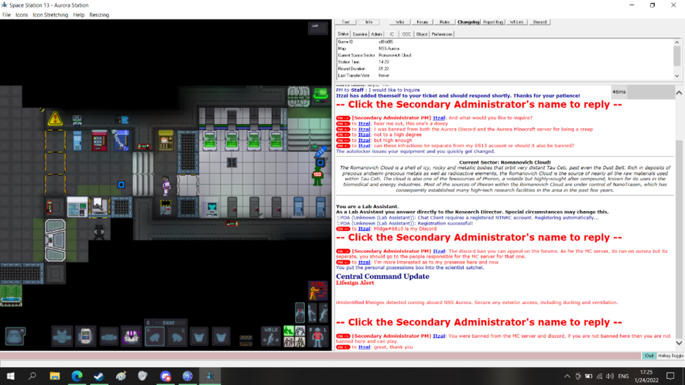 Currently its stationed on NSS Aurora and is property of NanoTrasen, doing its best to achieve scientific advancements while keeping morale up.
