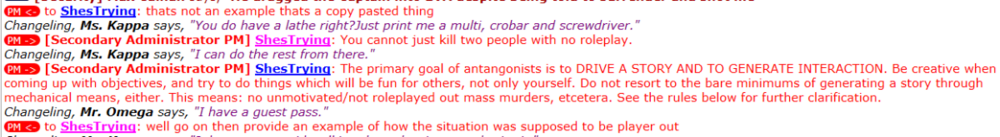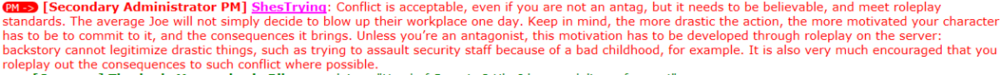 Reason for Appeal: So it's been 2 months, and 16 days, I remember being really bored that day and I just didn't have it in me to do hard rp stuff, yet still entered the server again due to my boredom. I stuck around for a bit, walked around the ship. Nothing was really happening, so I created a temporary gimmick for my character. That gimmick being that I had become crazy with boredom and started doing crazy stuff like fire rituals and speaking in a different language. Also ran around with a hazmat suit and sunglasses and threw shoes at people. And when I got contacted by an admin I was too lazy to even respond normally. That's basically the whole story.