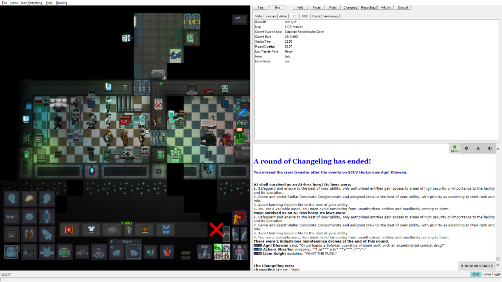 Not quite radio quotes, but they are the funny. The context to the second is the round ending 30 minutes in the moment the Ling changed forms due to a bug that caused the round to end when the antag "died."