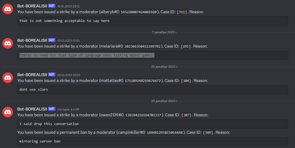 Reason for Appeal: Listen. When we play on another servers - we don't ban anyone for slurs in IC chat. I know this rule and use all worlds i can to slur other people (except N-word coz it's racist like and it's doesn't fit at situation). Let's talk about discord. Yeah, i have 3 bans with strange reason for me. I don't understand what you mean about "that is not something acceptable to say here" and "theres no need for that type of language when talking about games.", so when i was striked at 3-rd time guys from chat explain me why i don't need to use it in Discord. No problem. I forget this word and never use it in Aurora chat after this case. But i can't understand reason why i can't see it in game at IC situations. In most films actors use it (90-s films), and in this logic i use this word on server. I now about alternative way of aurora lore and if modern problems not used i could use this world like that. But nah, admin was faster. Ok, bro. No problem. If it's very bad word to use in game - I'll try to avoid it anytime when i will playing on server in game too, like in discord. I'm sorry, I didn't know that even inside the game it is forbidden due to the fact that this word in modern times I can hurt someone in the future time. Let's make a deal. I promise will never use this word in discord and in game and next i will be unbaned.