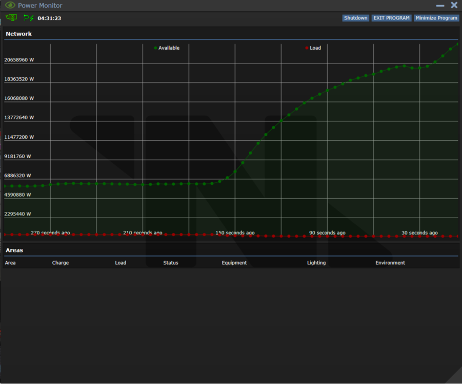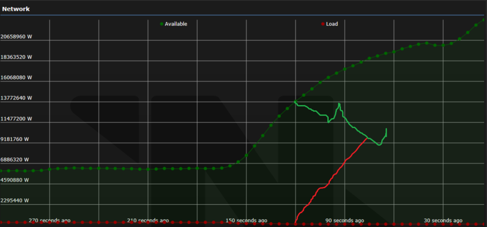So, a friend pursuing a electric design major student fascinated about this decided to ask me how this works. I shall explain as I should've explained in my original post. The green line is how much the power is available to be distributed. The red line is a demand for power. In the screenshot of OP, the green line is going up which means that more power is being generated. The red line is flat on 0 W. This indicates two things. The power is not being distributed. The power monitoring system is not hooked up to station grid/engine. I'm sure the answer is 2 because you can see below, there are no areas connected which means it is not hooked up to station grid/engine. Given a scenario where demand for power (load) increases and power generated. It would definitely look like this. If the red line is over the green line, this means that there is more demand for power than there is available. Some areas will not be getting charged and station will lose power eventually. Statistically, the relationship of Available Power (green) line is the opposite of/contrasts with Load Power (red) line. I hope this is clear for you. @Pratepresidenten @Soultheif96 @Karolis2011 @Arrow768