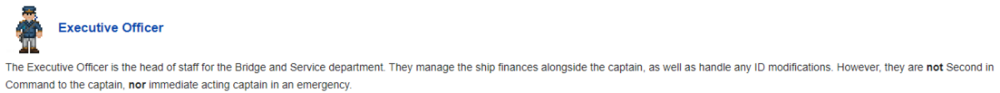 Dreamix Posted February 16, 2023 Posted February 16, 2023 I would be very curious to see how 2IC XO could go. I think it would be worth to at least try it for a month, two, or three. Even if just so we can say afterwards either "oh, it's actually a bad idea" or "actually it's nice and it should stay". Or even "actually it's nice, but does not really fit our atmosphere" How should it work? It should be 2IC plain and simple. Not second-in-succession, but actually second-in-command. That means Captain-level authority if the Captain is dead or absent. If there is a Captain, 2IC should not be making Captain-level decisions unless they align with the actual Captain's wishes. What should be 2IC XO's normal duties? Outside of emergencies, XO's duties should be the same as currently. XO should be managing helm matters, helping other heads with whatever they might need, handling access and accounts, etc. How would it change during emergencies? XO would be above other heads, with Captain-level authority. So if the Captain dies or is absent, XO would be able to give orders to other heads. The difference from current state, is that currently an acting Captain might need to be elected, which may sometimes take a short while to figure out who should take it, or potentially even might not happen at all if heads disagree (but I've not seen that happen, personally). What to do about species restrictions? Well, that's a tough one potentially. I think they should not change for XO. During normal operation, 2IC XO would not be above the Captain, so it's all good there. During emergencies, any head can take acting captainship, so clearly SCC is okay with non-human non-skrell heads to be taking command - just not permanently and in standard operation. There could be soft rules/guidelines that XOs must be somewhat loyal to SCC, and cannot be some random low-paid low-skill alien hired from mendell city slums, or something like that. Concerns about overstepping and etc? Same as the Captain, XOs should not be micro-managing departments, should not be going over heads to order their staff, and should not be butting into departments unless there is an actual reason to. Both during emergencies, and during standard operation. I think the concerns about XOs stepping over other heads are overblown - they'd have to follow same rules as the Captain. 1
